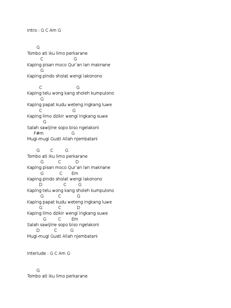 Chordtela Tombo Ati Bahasa Indonesia / Lirik tombo ati oleh opick.