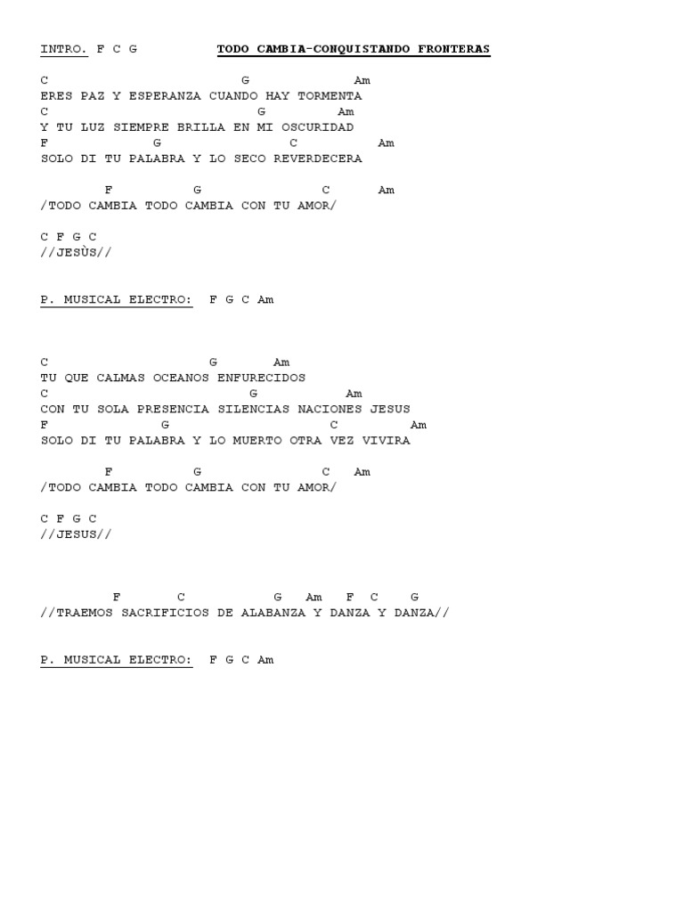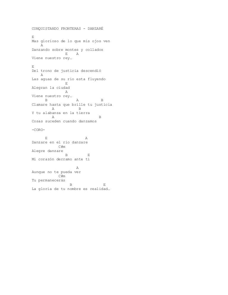 Danza Conquistando Fronteras Acordes - Canciones de conquistando fronteras con letras y acordes de guitarra, bajo, piano.