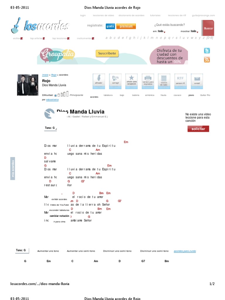 Dios Manda Lluvia Letra Y Acordes / Best version of dios manda lluvia available.