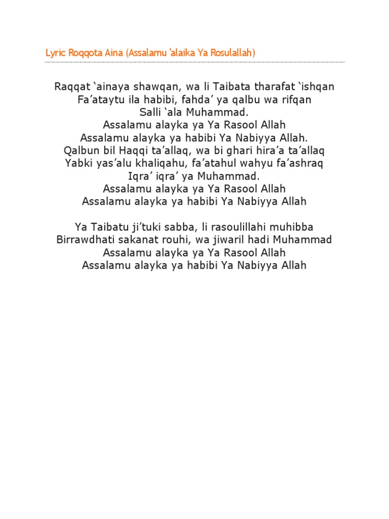 Roqqot Aina Lirik Arab Dan Artinya - Arti lirik lagu assalamu'alaika ya rasulullah (roqqota aina).