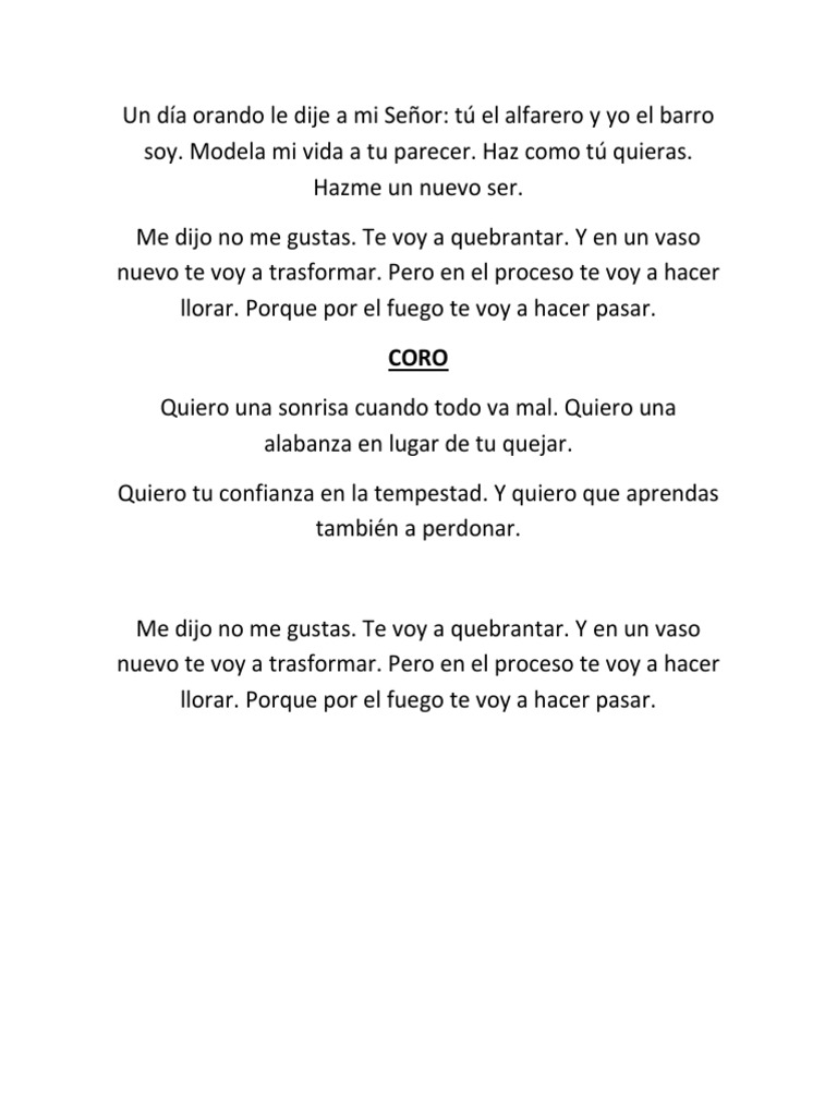 Alfarero Letra Como el barro e las manos del alfarero.